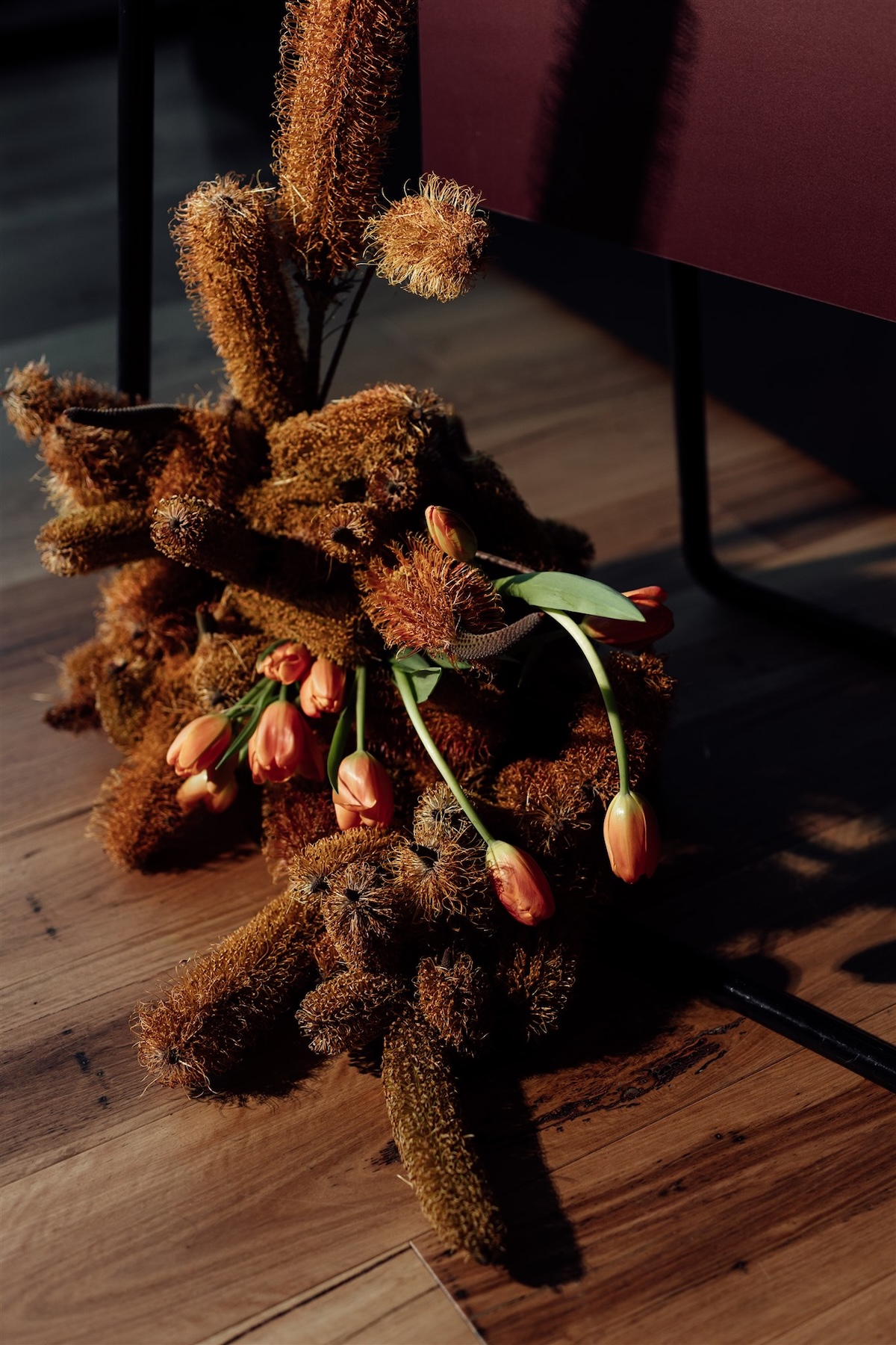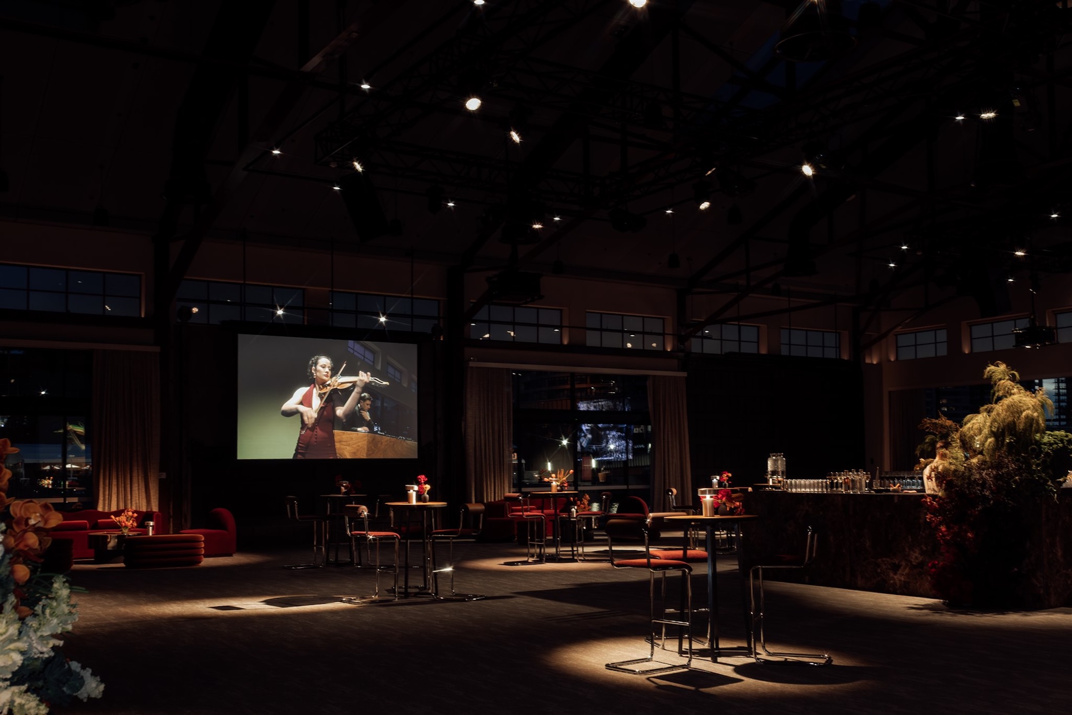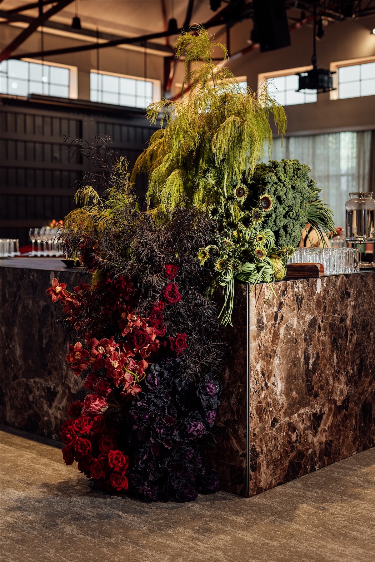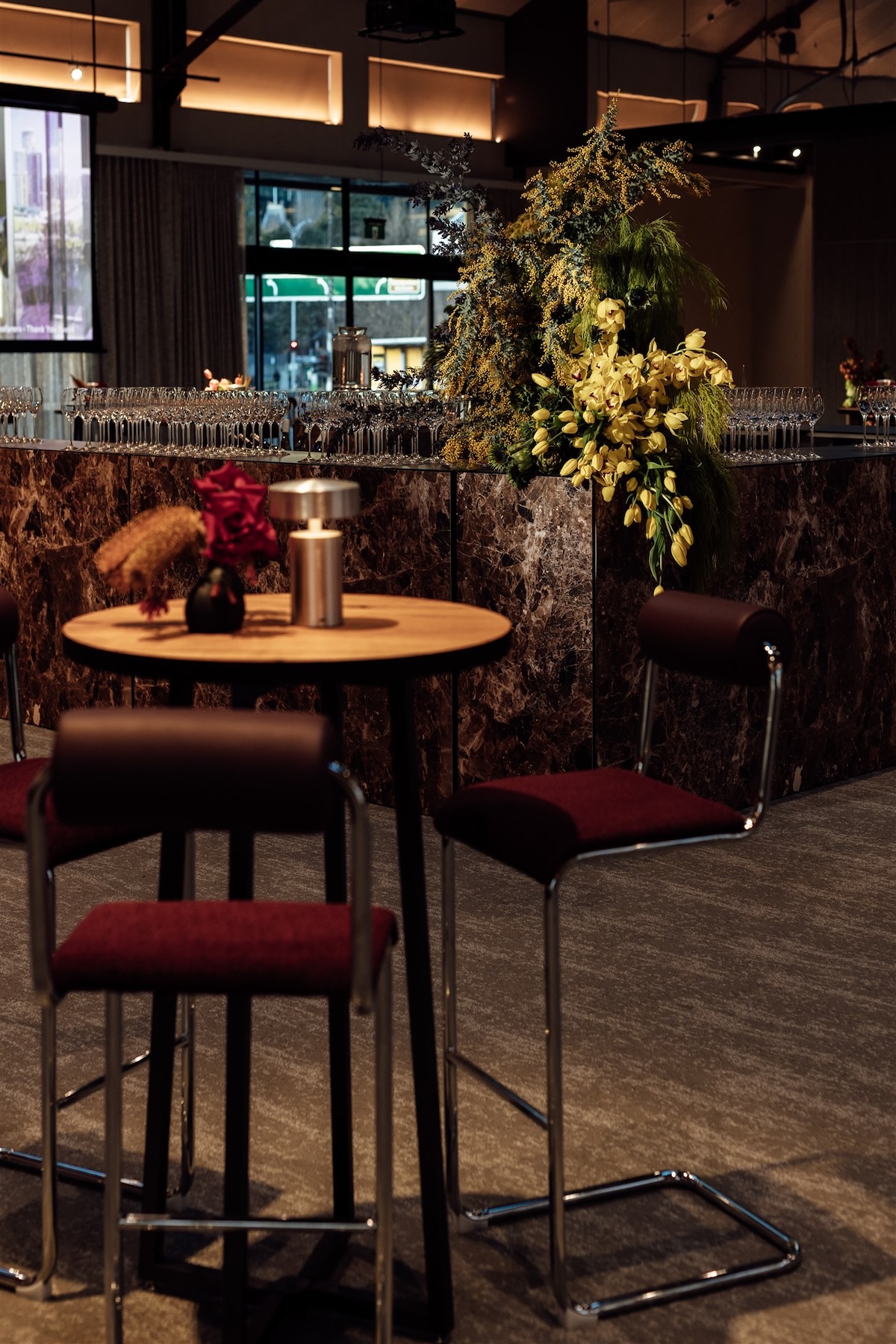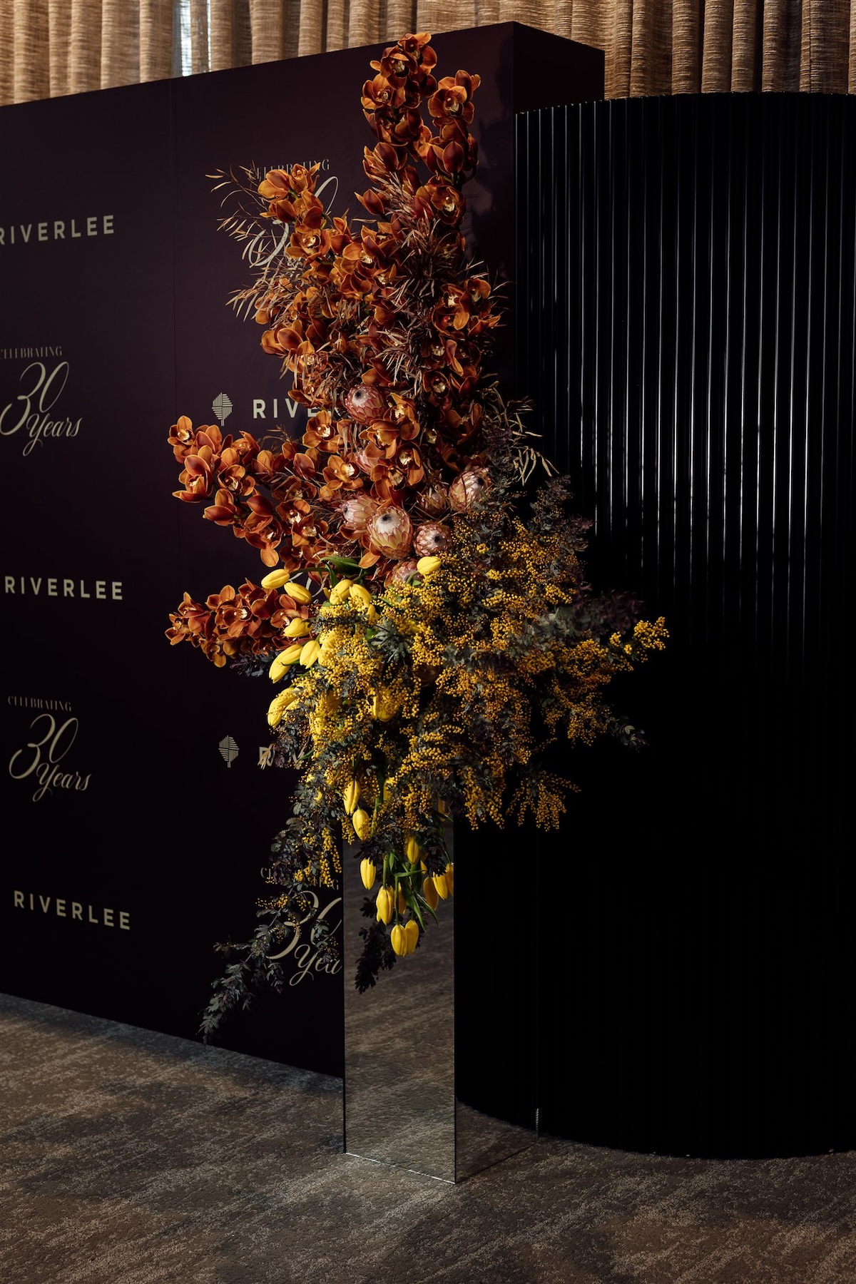 Drawing inspiration from Riverlee’s legacy of craftsmanship and design, the aesthetic balanced warmth and sophistication. Sculptural florals in rich amber, mustard, and deep burgundy tones softened the industrial architecture, whilst velvet touches, silver accents, and ambient lighting layered depth and atmosphere.