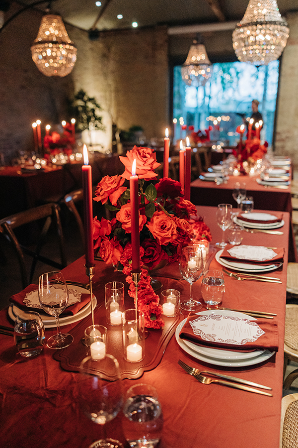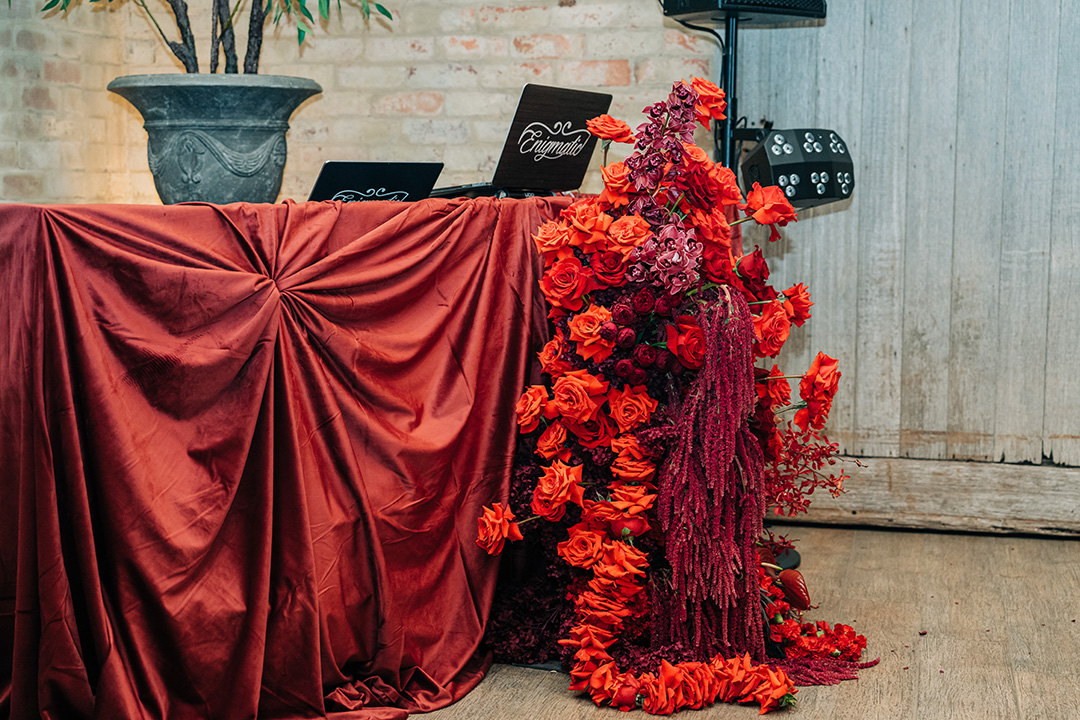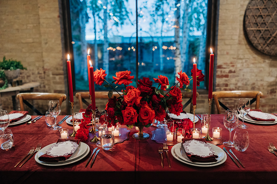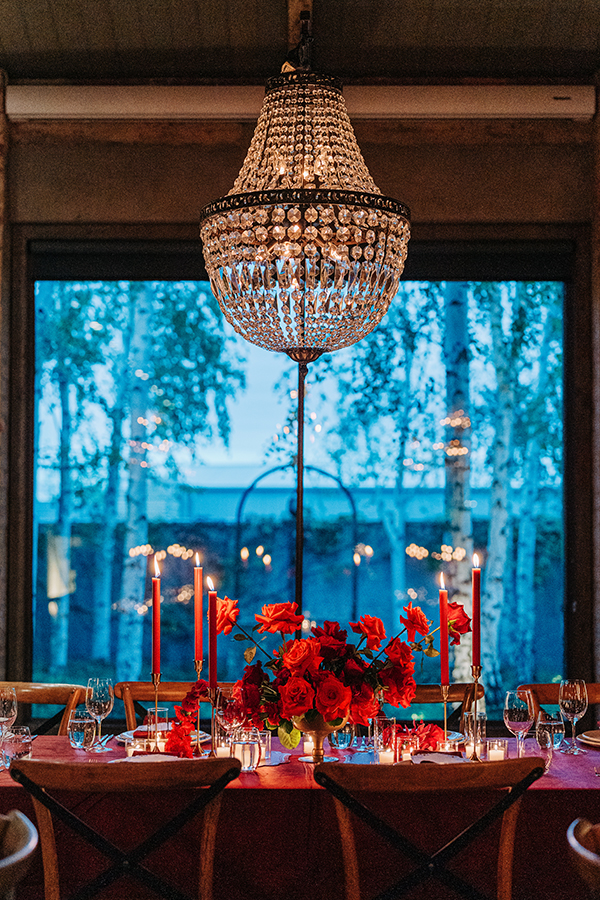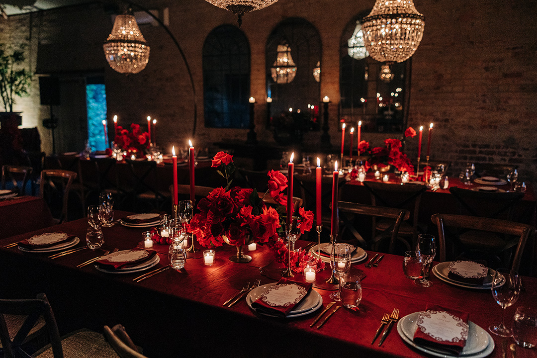 The Sangeet – An intimate, luxurious evening of candlelight, candelabras, velvet textures, deep red roses – and of course, dancing! Family and friends took the dance floor with heartfelt lively performances.